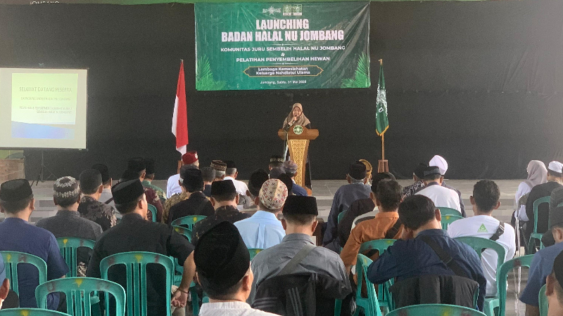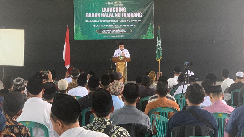 Launching Badan Halal NU Jombang dan pengukuhan Komunitas Juru Sembelih Halal (Juleha) Nahdliyin PCNU Jombang, dilakukan oleh Ketua PBNU KH Miftah Faqih.