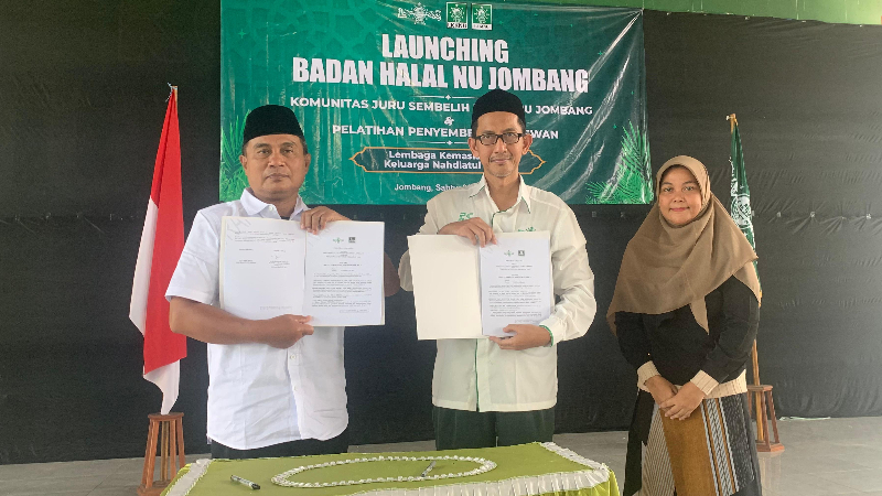 Dalam acara tersebut, juga dilakukan penandatangan MoU antara Pengurus Cabang Nahdlatul Ulama (PCNU) Jombang dengan Halal Institut.