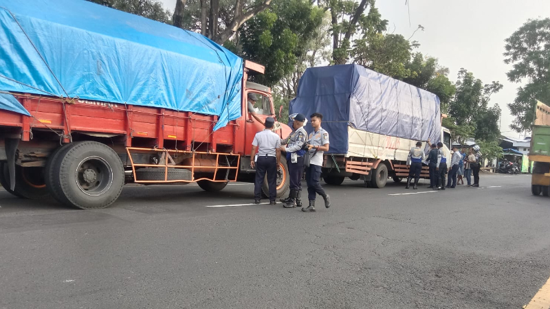 Petugas Gabungan Sosialisasi Zero ODOL, Hentikan Truk Kelebihan Muatan yang Melintas di Jombang